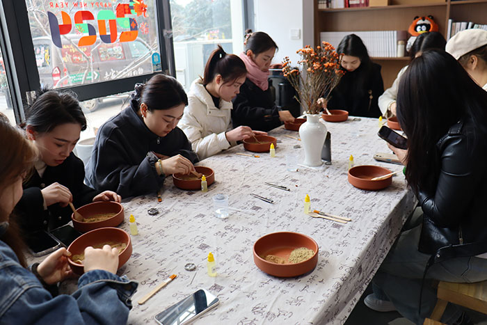 活動(dòng)現(xiàn)場(chǎng),專(zhuān)業(yè)老師給大家講解手工藝術(shù)品的制作方法。大家興致勃勃、迫不及待地拿起制作工具,準(zhǔn)備在各自的藝術(shù)品一展身手?,F(xiàn)場(chǎng)陣陣的歡聲笑語(yǔ),氣氛十分溫馨,大家看著自己的勞動(dòng)成果,成就感油然而生。